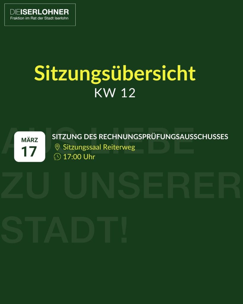 Auch in dieser Woche tagen wieder die Fachausschüsse des Rates der Stadt Iserlohn. Diese Woche i...