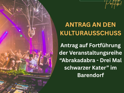 Antrag auf Fortführung der Veranstaltungsreihe „Abrakadabra – Drei Mal schwarzer Kater“ im Barendorf